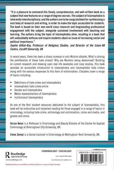 In recent years, there has been a sharp increase in anti-Muslim attacks. What is driving the proliferation of these hate crimes? Why are Muslims being demonised? Building on current research and drawing upon real-life examples and case studies, this book provides an accessible introduction to Islamophobia and Islamophobic hate crimes along with the various responses to this form of victimisation. Chapters cover a range of topics including: ¿ Definitions of hate crime and Islamophobia ¿ Islamophobic hate crime online ¿ Gender and Islamophobia ¿ Media representations of Islamophobia ¿ Institutional Islamophobia As one of the first student resources dedicated to the subject of Islamophobia, this book will be instructive and important reading for those engaged in a range of topics in criminology, including hate crime, victimology and victimisation, crime and media, and gender and crime.