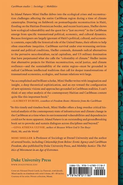 In Island Futures Mimi Sheller delves into the ecological crises and reconstruction challenges affecting the entire Caribbean region during a time of climate catastrophe. Drawing on fieldwork on postearthquake reconstruction in Haiti, flooding on the Haitian-Dominican border, and recent hurricanes, Sheller shows how ecological vulnerability and the quest for a "just recovery" in the Caribbean emerge from specific transnational political, economic, and cultural dynamics. Because foreigners are largely ignorant of Haiti's political, cultural, and economic contexts, especially the historical role of the United States, their efforts to help often exacerbate inequities. Caribbean survival under ever-worsening environmental and political conditions, Sheller contends, demands radical alternatives to the pervasive neocolonialism, racial capitalism, and US military domination that have perpetuated what she calls the "coloniality of climate." Sheller insists that alternative projects for Haitian reconstruction, social justice, and climate resilience-and the sustainability of the entire region-must be grounded in radical Caribbean intellectual traditions that call for deeper transformations of transnational economies, ecologies, and human relations writ large.