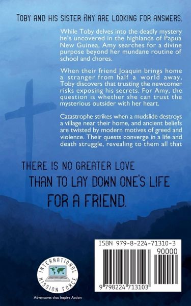 Fourteen-year-old Toby and his sixteen-year-old sister, Amy, are both searching for answers. While Toby delves into the deadly mystery he's uncovered in the wilds near their home in the highlands of Papua New Guinea, Amy searches for a divine purpose beyond her daily routine. When their good friend, Joaquin, comes home on shore leave, he brings a stranger from half a world away who threatens to interrupt both of their quests. Toby soon discovers that trusting the newcomer may risk exposing his secrets, but for Amy, the question is whether she can trust him with her heart. Catastrophe strikes when a mudslide destroys a village near their home, and ancient customs are twisted by modern motives of greed and violence. Toby and Amy find their quests converging in a life and death struggle where the sacrifice required of those who serve becomes clear. Will Toby and Amy find that setting aside their personal interests may lead to the answers they sought?