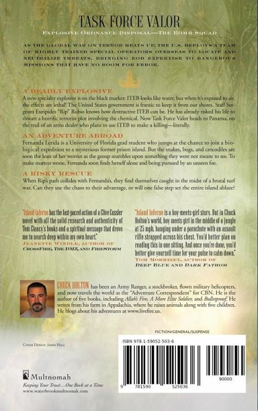 Task Force Valor Explosive Ordnance Disposal-The Bomb Squad As the global war on terror heats up, the U.S. deploys a team of highly trained special operators overseas to locate and neutralize threats, bringing EOD expertise to dangerous missions that have no room for error. A DEADLY EXPLOSIVE A new specialty explosive is on the black market: ITEB looks like water, but when it's exposed to air, the effects are lethal! The United States government is frantic to keep it from our shores. Staff Sergeant Euripides "Rip” Rubio knows how destructive ITEB can be. He has already risked his life to thwart a horrific terrorist plot involving the chemical. Now Task Force Valor heads to Panama, on the trail of an arms dealer who plans to use ITEB to make a killing-literally. AN ADVENTURE ABROAD Fernanda Lerida is a University of Panama grad student who jumps at the chance to join a biological expedition to a mysterious former prison island. But the snakes, bugs, and crocodiles are soon the least of her worries as the group stumbles upon something they were not meant to see. To make matters worse, Fernanda soon finds herself alone and being pursued by an unseen foe. A RISKY RESCUE When Rip's path collides with Fernanda's, they find themselves caught in the midst of a brutal turf war. Can they use the chaos to their advantage, or will one false step set the entire island ablaze?