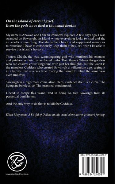 On the island of eternal grief Even the gods have died a thousand deaths My name is Anawar, and I am an immortal explorer. A few days ago, I was stranded on Sawarrgh, an island where everything looks twisted and the air smells of mourning. The atmosphere has forced suppressed memories to resurface. I have to consciously keep them at bay, or I won't be able to survive this island's horrors. There's Ghaph, the mad warmongering god who mutilates his enemies and patches on their dismembered limbs. Then there's Ndraja, the goddess who can enslave entire kingdoms with just her thoughts. But the worst is the nameless Goddess who created Sawarrgh a millennium ago, caging it in a barrier that reverses time, forcing the island to relive the same year over and over. Sawarrgh is a nightmare come alive. Here, existence itself is a curse. The living are barely alive. The stranded, condemned. I need to escape this island, and in doing so, free Sawarrgh from its perpetual punishment. And the only way to do that is to kill the Goddess. Elden Ring meets A Fistful of Dollars in this stand-alone horror grimdark fantasy What to expect:A Thought-Provoking Tale of Grief & Loss The Darkest Story I've Written So Far Morbid, Absurd, Existential, & Brutal God-Level Violence and Horror Grimdark Fantasy Body Horror What people are saying about Island of the Dying Goddess:¿¿¿¿¿ "I found the premise of the story fantastic and the presentation rich in detail." - Paul G Zareith, SFF Insiders ¿¿¿¿¿ "Ronit lays his soul bare with incredible skill, the grief raw and piercing." - Michael Delaney, Wolfmantula ¿¿¿¿¿ "... beautiful, dark, unforgettable story that will take root in your soul." - Lily S, The Faerie Review