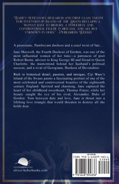 A PASSIONATE, FLAMBOYANT DUCHESS AND A CRUEL TWIST OF FATE... Jane Maxwell, the Fourth Duchess of Gordon, was one of the most influential women of her time-a patroness of poet Robert Burns, advisor to King George III and friend to Queen Charlotte, the mastermind behind her husband's political success, and a rival of Georgiana, Duchess of Devonshire. Rich in historical detail, passion, and intrigue, Ciji Ware's Island of the Swans paints a fascinating portrait of one of the most celebrated and controversial beauties of the eighteenth century England. Spirited and charming, Jane captured the heart of her childhood sweetheart, Thomas Fraser, while her beauty caught the eye of his rival, Alexander, Duke of Gordon. Torn between duty and love, Jane is thrust into a lifelong love triangle that would threaten to destroy all she holds dear.