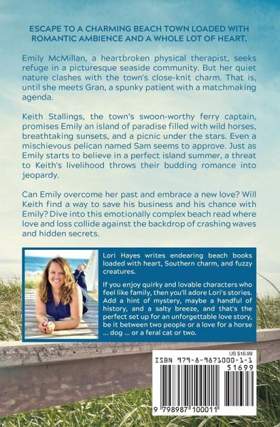 Multi-Award-Winning Book Escape to a charming beach town loaded with romantic ambience and a whole lot of heart. Emily McMillan, a heartbroken physical therapist, seeks refuge in a picturesque seaside community. But her quiet nature clashes with the town's close-knit charm. That is, until she meets Gran, a spunky patient with a matchmaking agenda. Keith Stallings, the town's swoon-worthy ferry captain, promises Emily an island of paradise filled with wild horses, breathtaking sunsets, and a picnic under the stars. Even a mischievous pelican named Sam seems to approve. Just as Emily starts to believe in a perfect island summer, a threat to Keith's livelihood throws their budding romance into jeopardy. Can Emily overcome her past and embrace a new love? Will Keith find a way to save his business and his chance with Emily? Dive into this emotionally complex beach read where love and loss collide against the backdrop of crashing waves and hidden secrets.