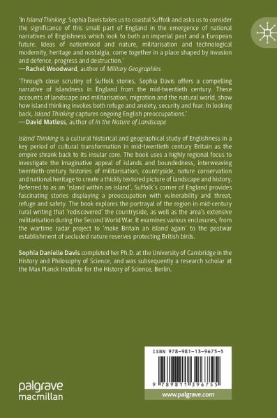Island Thinking is a cultural historical and geographical study of Englishness in a key period of cultural transformation in mid-twentieth century Britain as the empire shrank back to its insular core. The book uses a highly regional focus to investigate the imaginative appeal of islands and boundedness, interweaving twentieth-century histories of militarisation, countryside, nature conservation and national heritage to create a thickly textured picture of landscape and history. Referred to as an 'island within an island', Suffolk's corner of England provides fascinating stories displaying a preoccupation with vulnerability and threat, refuge and safety. The book explores the portrayal of the region in mid-century rural writing that 'rediscovered' the countryside, as well as the area's extensive militarisation during the Second World War. It examines various enclosures, from the wartime radar project to 'make Britain an island again' to the postwar establishment of secluded nature reserves protecting British birds.