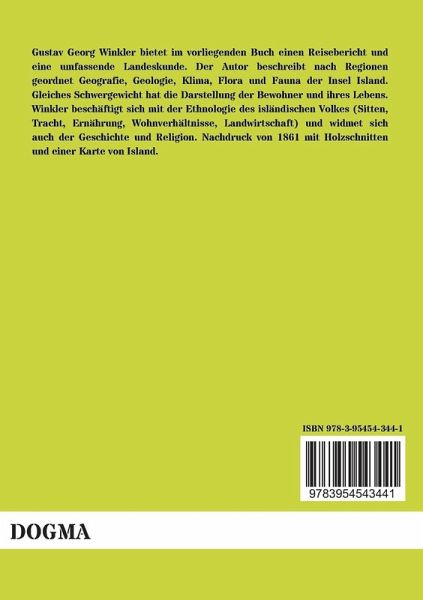 Gustav Georg Winkler bietet im vorliegenden Buch einen Reisebericht und eine umfassende Landeskunde. Der Autor beschreibt nach Regionen geordnet Geografie, Geologie, Klima, Flora und Fauna der Insel Island. Gleiches Schwergewicht hat die Darstellung der Bewohner und ihres Lebens. Winkler beschäftigt sich mit der Ethnologie des isländischen Volkes (Sitten, Tracht, Ernährung, Wohnverhältnisse, Landwirtschaft) und widmet sich auch der Geschichte und Religion. Nachdruck von 1861 mit Holzschnitten und einer Karte von Island.