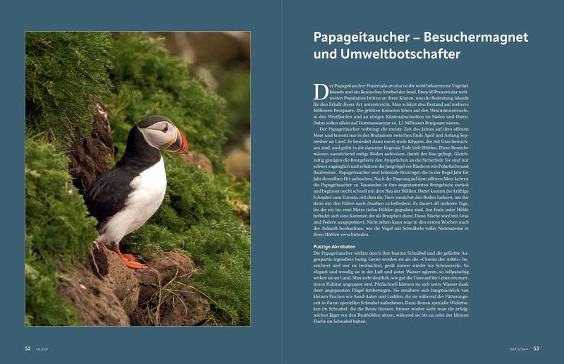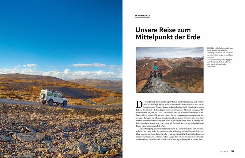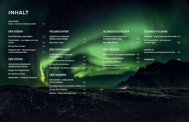 Der Zauber und die Magie des Naturwunders Island umfängt die Betrachtenden auf jeder Seite, lässt das Blau der Gletscher wie einzigartige Diamanten erscheinen, verwandelt eindrucksvolle Natur-Skulpturen zu einer Nature-Art-Ausstellung und erzählt Geschichten von Trollen, die sich irgendwo in dieser märchenhaften Landschaft versteckt halten.