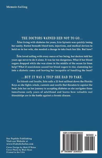 "I read this entire book in one sitting, laughing at some parts, nodding my head in recognition at others, and just marveling at how much of the diabetes experience was captured in 263 pages. Erin Spineto should be proud as hell for being it, living it, and writing it." Kerri Sparling, Writer/Editor at SixUntilMe.com "It's an enjoyable mix of love, learning, diabetes, and adventure." Scott Johnson, Diabetes Advocate, Writer, Speaker, Consultant at Scott's Diabetes Islands and Insulin is the story of a girl, given a boat, one hundred nautical miles of ocean, and way too much caffeine to reflect on how an incorrigible disease has altered her voyage into adulthood, all wrapped inside a diabetes survival manual. It is a cross between the humor of Steve Markley's Publish This Book, the travel journal of Jimmy Buffett's A Pirate Looks at Fifty, and the sailing of Pete Goss's Close to the Wind minus the sixty knot winds, fifty foot waves, below freezing temperatures, and the slick escape from death... hopefully.