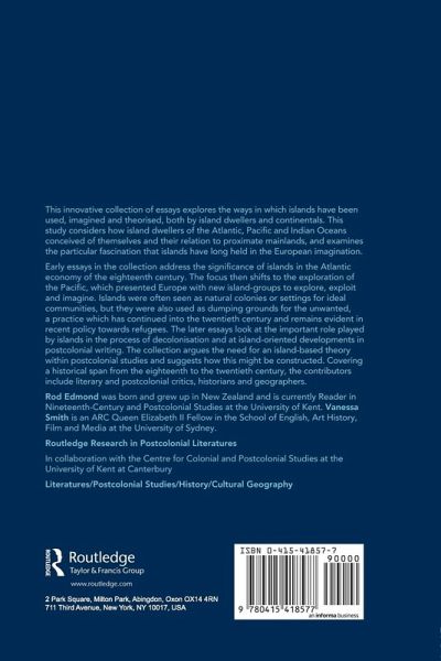 This innovative collection of essays explores the ways in which islands have been used, imagined and theorised, both by island dwellers and continentals. This study considers how island dwellers conceived of themselves and their relation to proximate mainlands, and examines the fascination that islands have long held in the European imagination. The collection addresses the significance of islands in the Atlantic economy of the eighteenth century, the exploration of the Pacific, the important role played by islands in the process of decolonisation, and island-oriented developments in postcolonial writing. Islands were often seen as natural colonies or settings for ideal communities but they were also used as dumping grounds for the unwanted, a practice which has continued into the twentieth century. The collection argues the need for an island-based theory within postcolonial studies and suggests how this might be constructed. Covering a historical span from the eighteenth to the twentieth century, the contributors include literary and postcolonial critics, historians and geographers.