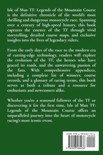 Isle of Man TT: Legends of the Mountain Course is the definitive chronicle of the world's most thrilling and dangerous motorcycle race. Spanning over a century of high-speed history, this book captures the essence of the TT through vivid storytelling, detailed course maps, and exclusive insights into the lives of legendary riders.¿ From the early days of the race to the modern era of cutting-edge technology, readers will explore the evolution of the TT, the heroes who have graced its roads, and the unwavering passion of the fans. With comprehensive appendices, including a complete list of winners, course records, and a glossary of racing terms, this book serves as both a tribute and a resource for enthusiasts and newcomers alike.¿ Whether you're a seasoned follower of the TT or discovering it for the first time, Isle of Man TT: Legends of the Mountain Course offers an unparalleled journey into the heart of motorcycle racing's most iconic event.