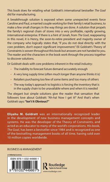 This book does for retailing what Goldratt's international bestseller The Goal did for manufacturing. Eli Goldratt's Theory of Constraints is woven throughout this book but answers are not handed to you. The reader works through the process together with the characters in the book to discover solutions.
