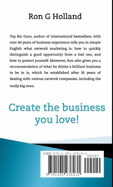 Ron G Holland - Top Biz Guru, author of international bestsellers, with over 40 years of business experience tells you in simple English what network marketing is, how to quickly distinguish a good opportunity from a bad one, and how to protect yourself. Moreover, Ron also gives you a recommendation of what he thinks a brilliant business to be in is, which he established after 30 years of dealing with various network companies, including the really big ones. The books answers many questions, including: 1. What exactly is Pyramid selling? 2. So what's Network Marketing? 3. Network Marketing vs. Pyramid Selling - how to tell the good from the fake! 4. What do big corporations, governments, the military and religious organizations have in common? 5. Why is network marketing so powerful? 6. A Business of your Own, but not on Your Own 7. Rules, Regulations and Fair Trading 8. How to tell a genuine opportunity from a fake one