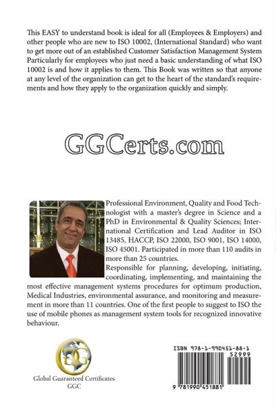 This EASY to understand book is ideal for all (Employees & Employers) and other people who are new to ISO 10002, (International Standard) who want to get more out of an established Quality Management System (QMS) and customer satisfaction. Particularly for employees who just need a basic understanding of what ISO 10002 is and how it applies to them. This Book was written so that anyone at any level of the organization can get to the heart of the standard's requirements and how they apply to the organization quickly and simply.