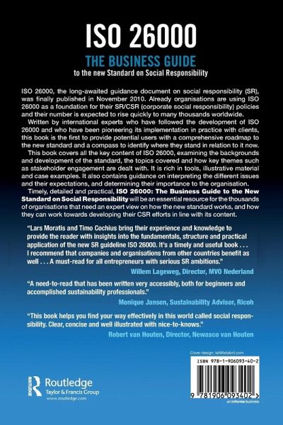 Preface 1. Introduction 2. What is social responsibility (according to ISO 26000)? Interlude I: SR in practice: motivations, manifestations and results 3. ISO 26000: background, characteristics and structure Interlude II: Myths and misunderstandings about ISO 26000: Part 1 4. SR principles Interlude III: Myths and misunderstandings about ISO 26000: Part 2 5. Stakeholder identification and engagement Interlude IV: Frequently asked questions about ISO 26000 6. SR core subjects and issues Interlude V: The materiality of ISO 26000 for SMEs 7. Selecting SR priorities 8. SR implementation 9. Epilogue: final thoughts on (the future of) ISO 26000 BibliographyAnnex 1: ISO 26000 Quick ScanAnnex 2: An exercise to identify stakeholders' interests and expectationsAnnex 3: The SR performance formAnnex 4: Millennium Development GoalsAnnex 5: The Global CompactAbout the authors