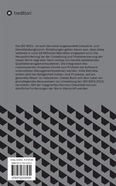 Die ISO 9001 ist wohl die meist angewendete Industrie- und Dienstleistungsnorm. Schätzungen gehen davon aus, dass diese weltweit in rund 18 Millionen Betrieben eingesetzt wird. Die Herausforderung bei der Umsetzung und Implementierung der neuen Norm liegt eher beim Umbau von bereits bestehenden Qualitätsmanagementsystemen. Die Integration des risikobasierten Ansatzes könnte zum Problem bei Software unterstützen Managementsystemen werden. Viele Betriebe sollten jetzt die Gelegenheit nutzen, ihre Prozesse "auf ein gesundes Mass" zu reduzieren. Dieses Buch soll dem Leser ein grundlegendes Bewusstsein zur Umsetzung der ISO 9001:2015 vermitteln. Mit der integrierten Normen Checkliste können sämtliche Forderungen der Norm einfach und effektiv überprüft werden.