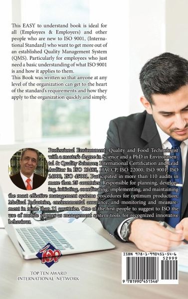 This EASY to understand book is ideal for all (Employees & Employers) and other people who are new to ISO 9001, (International Standard) who want to get more out of an established Quality Management System (QMS). Particularly for employees who just need a basic understanding of what ISO 9001 is and how it applies to them. This Book was written so that anyone at any level of the organization can get to the heart of the standard's requirements and how they apply to the organization quickly and simply. Plus Online Certification from Canada via www.toptenaward.org and/or www.silosa.ca and/or www.toptenaward.net