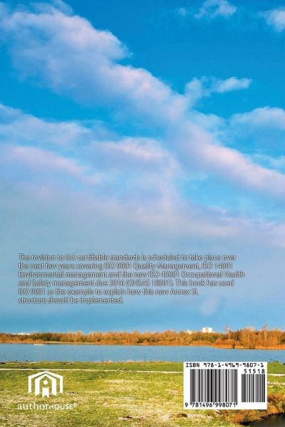 The revision to ISO certifiable standards is scheduled to take place over the next few years covering ISO 9001 Quality Management, ISO 14001 Environmental management and the new ISO 45001 Occupational Health and Safety management due 2016 (OHSAS 18001). This book has used ISO 9001 as the example to explain how this new Annex SL structure should be implemented.