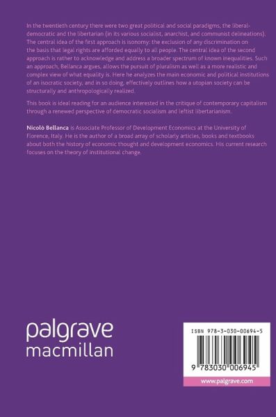 In the twentieth century there were two great political and social paradigms, the liberal-democratic and the libertarian (in its various socialist, anarchist, and communist delineations). The central idea of the first approach is isonomy: the exclusion of any discrimination on the basis that legal rights are afforded equally to all people. The central idea of the second approach is rather to acknowledge and address a broader spectrum of known inequalities. Such an approach, Bellanca argues, allows the pursuit of pluralism as well as a more realistic and complex view of what equality is. Here he analyzes the main economic and political institutions of an isocratic society, and in so doing, effectively outlines how a utopian society can be structurally and anthropologically realized.