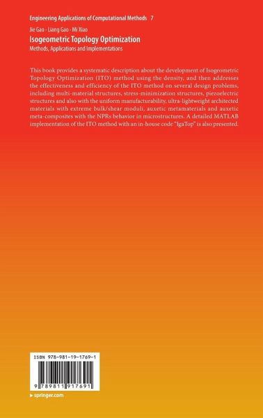 This book provides a systematic description about the development of Isogeometric Topology Optimization (ITO) method using the density, and then addresses the effectiveness and efficiency of the ITO method on several design problems, including multi-material structures, stress-minimization structures, piezoelectric structures and also with the uniform manufacturability, ultra-lightweight architected materials with extreme bulk/shear moduli, auxetic metamaterials and auxetic meta-composites with the NPRs behavior in microstructures. A detailed MATLAB implementation of the ITO method with an in-house code "IgaTop" is also presented.