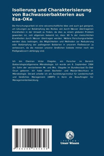 Die Forschungsarbeit ist eine wissenschaftliche Idee und auch gut geeignet, um Lösungen zur Bekämpfung des Risikos von durch Wasser übertragenen Krankheiten in der Umwelt zu finden, da dies zu einem globalen Problem geworden ist, seit allgemein bekannt ist, dass 80 % der menschlichen Krankheiten durch Wasser übertragen werden. Weitere Forschungsarbeiten werden dazu beitragen, die Möglichkeiten und Methoden zur Reduzierung oder Bekämpfung der pathogenen Bakterien in unserem Fließwasser zu verbessern, da die meisten unserer ländlichen Gebiete immer noch von Fließgewässern abhängig sind.
