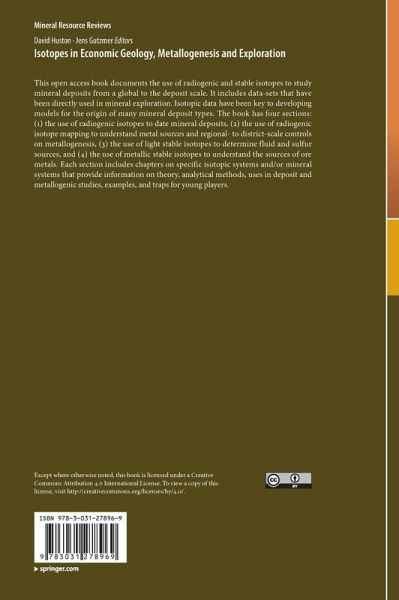 This open access book documents the use of radiogenic and stable isotopes to study mineral deposits from a global to the deposit scale. It includes data-sets that have been directly used in mineral exploration. Isotopic data have been key to developing models for the origin of many mineral deposit types. The book has four sections: (1) the use of radiogenic isotopes to date mineral deposits, (2) the use of radiogenic isotope mapping to understand metal sources and regional- to district-scale controls on metallogenesis, (3) the use of light stable isotopes to determine fluid and sulfur sources, and (4) the use of metallic stable isotopes to understand the sources of ore metals. Each section includes chapters on specific isotopic systems and/or mineral systems that provide information on theory, analytical methods, uses in deposit and metallogenic studies, examples, and traps for young players.