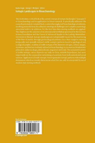 This work takes a critical look at the current concept of isotopic landscapes ("isoscapes") in bioarchaeology and its application in future research. It specifically addresses the research potential of cremated finds, a somewhat neglected bioarchaeological substrate, resulting primarily from the inherent osteological challenges and complex mineralogy associated with it. In addition, for the first time data mining methods are applied. The chapters are the outcome of an international workshop sponsored by the German Science Foundation and the Centre of Advanced Studies at the Ludwig-Maximilian-University in Munich. Isotopic landscapes are indispensable tracers for the monitoring of the flow of matter through geo/ecological systems since they comprise existing temporally and spatially defined stable isotopic patterns found in geological and ecological samples. Analyses of stable isotopes of the elements nitrogen, carbon, oxygen, strontium, and lead are routinely utilized in bioarchaeologyto reconstruct biodiversity, palaeodiet, palaeoecology, palaeoclimate, migration and trade. The interpretive power of stable isotopic ratios depends not only on firm, testable hypotheses, but most importantly on the cooperative networking of scientists from both natural and social sciences. Application of multi-isotopic tracers generates isotopic patterns with multiple dimensions, which accurately characterize a find, but can only be interpreted by use of modern data mining methods.