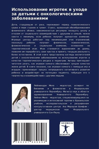 Deti, stradaüschie ot raka, perezhiwaüt period psihologicheskogo srywa i more strahow i trewog. Stress, wyzwannyj obezobrazhiwaniem fizicheskogo oblika, newozmozhnost'ü regulqrno poseschat' shkolu i otkazom ot social'nogo wzaimodejstwiq s druz'qmi i sem'ej, mozhno swesti k minimumu, esli rebenok poluchaet adekwatnoe wnimanie. Igrowye centry rabotaüt nad minimizaciej ätih ogranichenij, poskol'ku rebenok poluchaet fizicheskoe, psihologicheskoe, fiziologicheskoe i social'noe wnimanie, osnowannoe na terapewticheskoj igre. Igra stanowitsq wyrazheniem ih dramy, pozwolqq im pererabotat' swoi chuwstwa i prinqt' tekuschuü real'nost' bolee estestwenno. V ätoj knige predstawleny wzglqdy wospitatelej detej s onkologicheskimi zabolewaniqmi na ispol'zowanie igrotek w kachestwe terapewticheskogo resursa w pediatrii. Awtory priglashaüt chitatelq uznat', kak igrowaq komnata obespechiwaet luchshee kachestwo zhizni detej. V knige pokazano, kak igrowaq komnata s pomosch'ü igr i igrushek garmoniziruet process neprerywnogo kognitiwnogo razwitiq rebenka i wozdejstwuet na potencial pacienta, pobuzhdaq ego k tworchestwu i wzaimodejstwiü s drugimi lüd'mi.