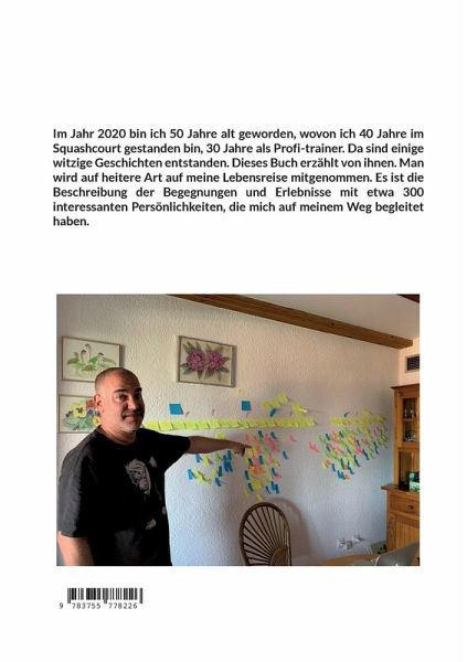 50 Jahre alt geworden, davon 40 Jahre im Squashcourt gestanden, wovon 30 Jahre als Profitrainer. Da sind einige witzigen Geschichten passiert wovon dieses Buch erzählt. Man wird auf heitere Art auf meine Lebensgeschichte mitgenommen. Es ist die Beschreibung der Begegnungen und Erlebnisse mit etwa 300 interessanten Persönlichkeiten, welche dieses Buch zu dem machen, was es ist. Einige Gastgeschichten erzählen auch die Aussensicht vieler Beteiligter.