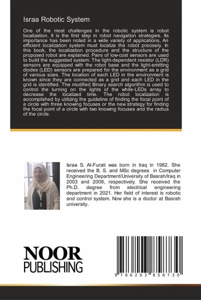 One of the most challenges in the robotic system is robot localization. It is the first step in robot navigation strategies. Its importance has been noted in a wide variety of applications, An efficient localization system must localize the robot precisely. In this book, the localization procedure and the structure of the proposed robot are explained. Pairs of low-cost sensors are used to build the suggested system. The light-dependent resistor (LDR) sensors are equipped with the robot base and the light-emitting diodes (LED) sensors are prepared for the environment as a grid of various sizes. The location of each LED in the environment is known since they are connected as a grid and each LED in the grid is identified. The modified Binary search algorithm is used to control the turning on the lights of the white-LEDs array to decrease the localized time. The robot localization is accomplished by utilizing the guideline of finding the focal point of a circle with three knowing focuses or the new strategy for finding the focal point of a circle with two knowing focuses and the radius of the circle.