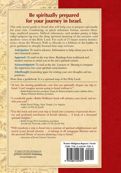 A travel guide to Israel that will help today's pilgrim tap into the deep spiritual meaning of the sites of the Holy Land. Includes ancient blessings, medieval prayers, biblical references and modern poetry for each of 25 major tourist destinations.