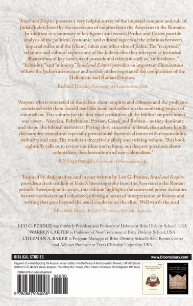 This book is open access and available on www.bloomsburycollections.com. It is funded by Knowledge Unlatched. Israel and Empire introduces students to the history, literature, and theology of the Hebrew Bible and texts of early Judaism, enabling them to read these texts through the lens of postcolonial interpretation. This approach should allow students to recognize not only how cultural and socio-political forces shaped ancient Israel and the worldviews of the early Jews but also the impact of imperialism on modern readings of the Bible. Perdue and Niang cover a broad sweep of history, from 1300 BCE to 72 CE, including the late Bronze age, Egyptian imperialism, Israel's entrance into Canaan, the Davidic-Solomonic Empire, the Assyrian Empire, the Babylonian Empire, the Persian Empire, the Greek Empire, the Maccabean Empire, and Roman rule. Additionally the authors show how earlier examples of imperialism in the Ancient Near East provide a window through which to see the forces and effects of imperialism in modern history.