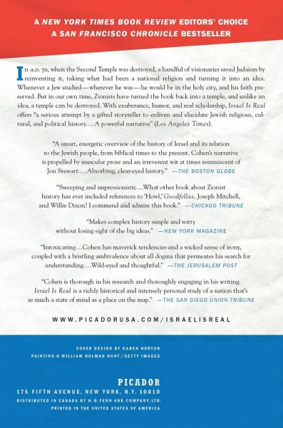 A NEW YORK TIMES BOOK REVIEW EDITORS' CHOICE A SAN FRANCISCO CHRONICLE BESTSELLER In AD 70, when the Second Temple was destroyed, a handful of visionaries saved Judaism by reinventing it, taking what had been a national religion and turning it into an idea. Whenever a Jew studied-wherever he was-he would be in the holy city, and his faith preserved. But in our own time, Zionists have turned the book back into a temple, and unlike an idea, a temple can be destroyed. With exuberance, humor, and real scholarship, Rich Cohen's Israel is Real offers "a serious attempt by a gifted storyteller to enliven and elucidate Jewish religious, cultural, and political history . . . A powerful narrative" (Los Angeles Times).