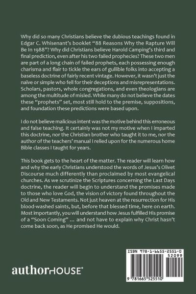 Jesus is coming soon, for all signs point to His arrival...again. The Last Days are upon us...again. The Great Tribulation is about to start...again. We will see the Lord coming in clouds of glory, for we are the last generation...again. Even before William Miller pronounced these kinds of tidings for 1843, and when it didn't occur, he assured his followers it would happen on October 22, 1844; this refrain was common from Christians down throughout the ages. However, since the time of Miller, and especially since 1948, when the nation of Israel was given birth, the chorus of Christian voices proclaiming End-Times and Last-Days is a constant message. The problem, all those who have preached this since 70AD, have been wrong, always, 100% of the time. In the Revelation of Jesus, given to Saint John, he assures the seven Churches the time was near, it was in fact, at hand. The letter closes with the assurance of that fact, the Lord was coming soon, for Jesus states: "Surely I come quickly" (Revelation 22:20). So, that leaves us with two perplexing and bewildering conclusions. Jesus was wrong about His soon coming, and those who preach this, have also been preaching a tall tale, a cock-and-bull story. However, the early Christians did not believe what is being taught across today's pulpits concerning this teaching. They knew those events would happen in their lifetime, not 2,000 years in the future, they took Jesus at His word, and it saved their lives. In this book, you will find the doctrine believed by early Christians, and the reason the modern Last Days doctrine has always been wrong, and how it was fulfilled. You will also find the message taught by Jesus, and presented throughout the Holy Scriptures, hope and victory for Christ's Church.