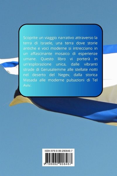 Scoprite un viaggio narrativo attraverso laterra di Israele, una terra dove storie antiche e voci moderne si intrecciano in un affascinante mosaico di esperienze umane. Questo libro vi porterà in un'esplorazione unica, dalle vibranti strade di Gerusalemme alle stellate notti nel deserto del Negev, dalla storica Masada alle moderne pulsazioni di TelAviv.