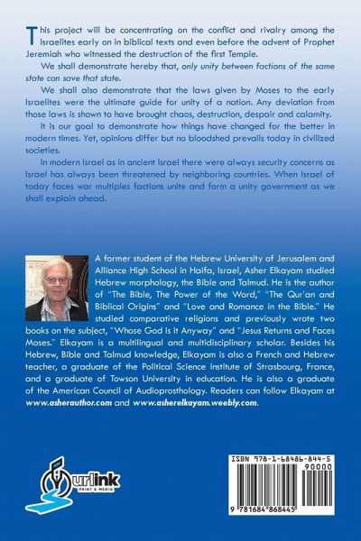 This project will be concentrating on the conflict and rivalry among the Israelites early on in biblical texts and even before the advent of Prophet Jeremiah who witnessed the destruction of the first Temple. We shall demonstrate hereby that, only unity between factions of the same state can save that state. We shall also demonstrate that the laws given by Moses to the early Israelites were the ultimate guide for unity of a nation. Any deviation from those laws is shown to have brought chaos, destruction, despair and calamity. It is our goal to demonstrate how things have changed for the better in modern times. Yet, opinions differ but no bloodshed prevails today in civilized societies. In modern Israel as in ancient Israel there were always security concerns as Israel has always been threatened by neighboring countries. When Israel of today faces war multiples factions unite and form a unity government as we shall explain ahead.
