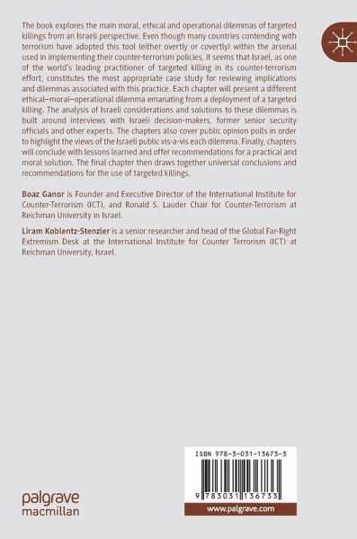The book explores the main moral, ethical and operational dilemmas of targeted killings from an Israeli perspective. Even though many countries contending with terrorism have adopted this tool (either overtly or covertly) within the arsenal used in implementing their counter-terrorism policies, it seems that Israel, as one of the world's leading practitioner of targeted killing in its counter-terrorism effort, constitutes the most appropriate case study for reviewing implications and dilemmas associated with this practice. Each chapter will present a different ethical-moral-operational dilemma emanating from a deployment of a targeted killing. The analysis of Israeli considerations and solutions to these dilemmas is built around interviews with Israeli decision-makers, former senior security officials and other experts. The chapters also cover public opinion polls in order to highlight the views of the Israeli public vis-a-vis each dilemma. Finally, chapters will conclude with lessons learned and offer recommendations for a practical and moral solution. The final chapter then draws together universal conclusions and recommendations for the use of targeted killings.