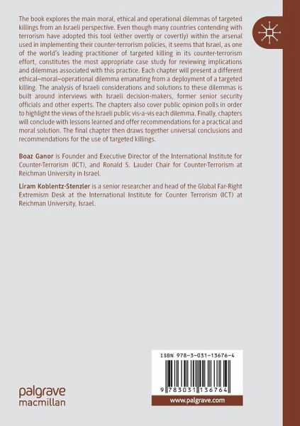 The book explores the main moral, ethical and operational dilemmas of targeted killings from an Israeli perspective. Even though many countries contending with terrorism have adopted this tool (either overtly or covertly) within the arsenal used in implementing their counter-terrorism policies, it seems that Israel, as one of the world's leading practitioner of targeted killing in its counter-terrorism effort, constitutes the most appropriate case study for reviewing implications and dilemmas associated with this practice. Each chapter will present a different ethical-moral-operational dilemma emanating from a deployment of a targeted killing. The analysis of Israeli considerations and solutions to these dilemmas is built around interviews with Israeli decision-makers, former senior security officials and other experts. The chapters also cover public opinion polls in order to highlight the views of the Israeli public vis-a-vis each dilemma. Finally, chapters will conclude with lessons learned and offer recommendations for a practical and moral solution. The final chapter then draws together universal conclusions and recommendations for the use of targeted killings.
