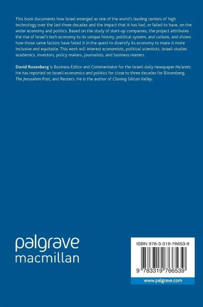 This book documents how Israel emerged as one of the world's leading centers of high technology over the last three decades and the impact that it has had, or failed to have, on the wider economy and politics. Based on the study of start-up companies, the project attributes the rise of Israel's tech economy to its unique history, political system, and culture, and shows how those same factors have failed it in the quest to diversify its economy to make it more inclusive and equitable. This work will interest economists, political scientists, Israeli studies academics, investors, policy makers, journalists, and business readers.