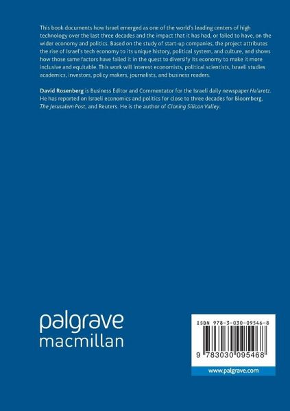 This book documents how Israel emerged as one of the world's leading centers of high technology over the last three decades and the impact that it has had, or failed to have, on the wider economy and politics. Based on the study of start-up companies, the project attributes the rise of Israel's tech economy to its unique history, political system, and culture, and shows how those same factors have failed it in the quest to diversify its economy to make it more inclusive and equitable. This work will interest economists, political scientists, Israeli studies academics, investors, policy makers, journalists, and business readers.