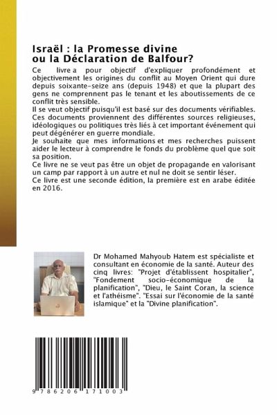 Ce livre a pour objectif d'expliquer profondément et objectivement les origines du conflit au Moyen Orient qui dure depuis soixante-seize ans (depuis 1948) et que la plupart des gens ne comprennent pas le tenant et les aboutissements de ce conflit très sensible.Il se veut objectif puisqu'il est basé sur des documents vérifiables. Ces documents proviennent des différentes sources religieuses, idéologiques ou politiques très liés à cet important événement qui peut dégénérer en guerre mondiale. Je souhaite que mes informations et mes recherches puissent aider le lecteur à comprendre le fonds du problème quel que soit sa position.Ce livre ne se veut pas être un objet de propagande en valorisant un camp par rapport à un autre et nul ne doit se sentir léser.Ce livre est une seconde édition, la première est en arabe éditée en 2016.