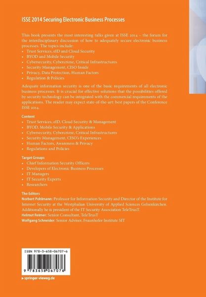 This book presents the most interesting talks given at ISSE 2014 - the forum for the inter-disciplinary discussion of how to adequately secure electronic business processes.