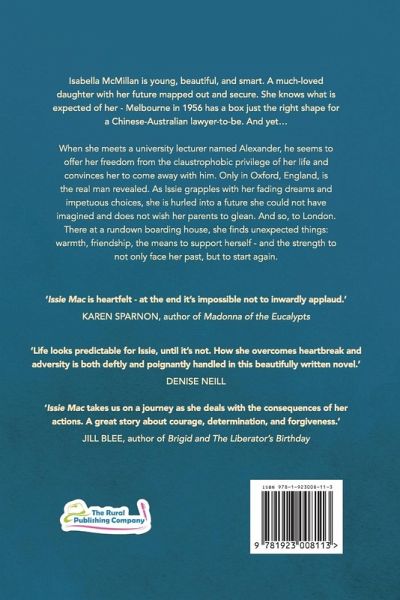 Isabella McMillan is young, beautiful, and smart. A much-loved daughter with her future mapped out and secure. She knows what is expected of her - Melbourne in 1956 has a box just the right shape for a Chinese-Australian lawyer-to-be. And yet ... When she meets a university lecturer named Alexander, he seems to offer her freedom from the claustrophobic privilege of her life and convinces her to come away with him. Only in Oxford, England, is the real man revealed. As Issie grapples with her fading dreams and impetuous choices, she is hurled into a future she could not have imagined and does not wish her parents to glean. And so, to London. There at a rundown boarding house, she finds unexpected things: warmth, friendship, the means to support herself - and the strength to not only face her past, but to start again.