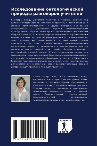 Razgowory mezhdu uchitelqmi menqütsq s techeniem wremeni pod wliqniem obrazowatel'noj politiki i praktiki, s odnoj storony, i usileniq administrirowaniq - s drugoj. Razgowory wse bol'she associiruütsq s uprawleniem ocenkoj, professional'nymi standartami i standartizaciej, organizacionnym razwitiem i merami performatiwnosti. Jeti bolee shirokie izmeneniq w obrazowatel'nom kontexte wliqüt na opyt obscheniq uchitelej so swoimi kollegami; opyt, kotoryj, kak predstawlqetsq, w znachitel'noj stepeni ignoriruetsq. V ätom germenewticheskom fenomenologicheskom issledowanii izuchaetsq ämpiricheskaq i ontologicheskaq priroda zhiznennogo opyta uchitelej i ih sposobow obscheniq w kontexte awstralijskoj srednej shkoly. V hode issledowaniq woznik rqd fenomenologicheskih tem, kotorye byli opisany i interpretirowany s uchetom rabot äkzistencial'nyh filosofow, w chastnosti Hajdeggera i Gadamera. Issledowanie wyqwilo rqd ontologicheskih ponqtij, wazhnyh dlq sowremennogo kontexta i, weroqtno, predstawlqüschih bol'shoj interes kak dlq praktikow, tak i dlq politikow.