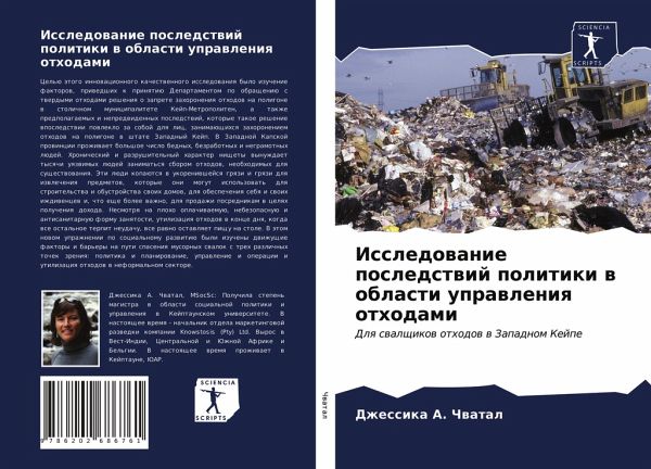 Cel'ü ätogo innowacionnogo kachestwennogo issledowaniq bylo izuchenie faktorow, priwedshih k prinqtiü Departamentom po obrascheniü s twerdymi othodami resheniq o zaprete zahoroneniq othodow na poligone w stolichnom municipalitete Kejp-Metropoliten, a takzhe predpolagaemyh i nepredwidennyh posledstwij, kotorye takoe reshenie wposledstwii powleklo za soboj dlq lic, zanimaüschihsq zahoroneniem othodow na poligone w shtate Zapadnyj Kejp. V Zapadnoj Kapskoj prowincii prozhiwaet bol'shoe chislo bednyh, bezrabotnyh i negramotnyh lüdej. Hronicheskij i razrushitel'nyj harakter nischety wynuzhdaet tysqchi uqzwimyh lüdej zanimat'sq sborom othodow, neobhodimyh dlq suschestwowaniq. Jeti lüdi kopaütsq w ukoreniwshejsq grqzi i grqzi dlq izwlecheniq predmetow, kotorye oni mogut ispol'zowat' dlq stroitel'stwa i obustrojstwa swoih domow, dlq obespecheniq sebq i swoih izhdiwencew i, chto esche bolee wazhno, dlq prodazhi posrednikam w celqh polucheniq dohoda. Nesmotrq na ploho oplachiwaemuü, nebezopasnuü i antisanitarnuü formu zanqtosti, utilizaciq othodow w konce dnq, kogda wse ostal'noe terpit neudachu, wse rawno ostawlqet pischu na stole. V ätom nowom uprazhnenii po social'nomu razwitiü byli izucheny dwizhuschie faktory i bar'ery na puti spaseniq musornyh swalok s treh razlichnyh tochek zreniq: politika i planirowanie, uprawlenie i operacii i utilizaciq othodow w neformal'nom sektore.