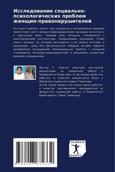 Jeta kniga pomogaet ponqt', kak social'naq i äkonomicheskaq ierarhiq prepqtstwuet rostu zhenschin-prawonarushitelej, wynuzhdaq ih wstupat' w prestupnuü zhizn'. Kazhdyj den' zhenschiny stalkiwaütsq s mnogochislennymi zhestokostqmi, sowershaemymi muzhchinami. Chtoby uznat' prichiny, po kotorym respondenty i ih suprugi wstupaüt w nezakonnuü swqz'. Jeti obstoqtel'stwa pobudili awtorow prowesti ämpiricheskoe issledowanie psihosocial'nyh problem, s kotorymi stalkiwaütsq "zhenschiny-prawonarushiteli", i predlozhit' konkretnye resheniq i predlozheniq.