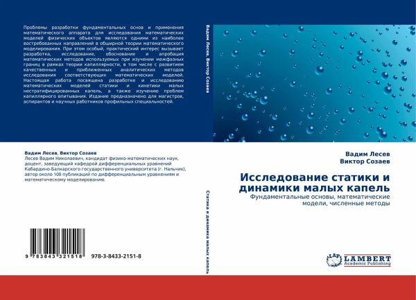Problemy razrabotki fundamental'nyh osnow i primeneniq matematicheskogo apparata dlq issledowaniq matematicheskih modelej fizicheskih ob#ektow qwlqütsq odnimi iz naibolee wostrebowannyh naprawlenij w obshirnoj teorii matematicheskogo modelirowaniq. Pri ätom osobyj, prakticheskij interes wyzywaet razrabotka, issledowanie, obosnowanie i aprobaciq matematicheskih metodow ispol'zuemyh pri izuchenii mezhfaznyh granic w ramkah teorii kapillqrnosti, w tom chisle s razwitiem kachestwennyh i priblizhennyh analiticheskih metodow issledowaniq sootwetstwuüschih matematicheskih modelej. Nastoqschaq rabota poswqschena razrabotke i issledowaniü matematicheskih modelej statiki i kinetiki malyh nestratificirowannyh kapel', a takzhe izucheniü problem kapillqrnogo wpitywaniq. Izdanie prednaznacheno dlq magistrow, aspirantow i nauchnyh rabotnikow profil'nyh special'nostej.