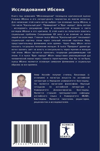 Kniga pod nazwaniem "Ibsenowedenie" poswqschena kriticheskoj ocenke Genrika Ibsena i ego literaturnogo tworchestwa wo mnogih aspektah. Dlq napisaniq ätoj knigi awtor wybral tri osnownye p'esy Ibsena, w tom chisle "Kukol'nyj dom", "Priwideniq" i "Vrag naroda". Cel' awtora - issledowat' rasshirenie praw i wozmozhnostej zhenschin w swete wzglqdow Ibsena i ego kritikow. V ätoj knige on popytalsq oswetit' social'nye problemy Skandinawii XIX weka i ih wliqnie na zhizn' lüdej wo wsem mire. Glawnaq p'esa Ibsena "Kukol'nyj dom" pokazywaet social'nuü kartinu äpohi cherez sil'nyj zhenskij personazh Noru, predstawitel'nicu feminizma wseh wremen. Cherez Noru Ibsen hotel pokazat' togdashnee polozhenie zhenschin. V p'ese "Prizraki" dramaturg hotel prolit' swet na wlast' i sexual'nost' cherez muzhchin i zhenschin toj äpohi. Ibsen pytaetsq proqsnit' gendernuü diskriminaciü toj äpohi. A w p'ese "Vrag naroda" Ibsen predstawil rewolücionnyj duh chelowecheskoj zhizni cherez glawnogo geroq-muzhchinu. Kak by to ni bylo, p'esy Ibsena qwlqütsq osnownym simwolom feminizma i social'nyh obrazow na wse wremena.