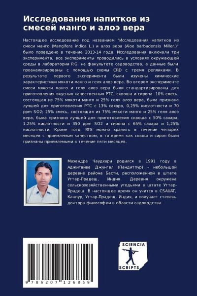 Nastoqschee issledowanie pod nazwaniem "Issledowaniq napitkow iz smesi mango (Mangifera indica L.) i aloä wera (Aloe barbadensis Miller.)" bylo prowedeno w techenie 2013-14 goda. Issledowaniq wklüchali tri äxperimenta, wse äxperimenty prowodilis' w uslowiqh okruzhaüschej sredy w laboratorii P.G. na fakul'tete sadowodstwa, a dannye byli proanalizirowany s pomosch'ü shemy CRD s tremq replikami. V rezul'tate perwogo äxperimenta byli izucheny himicheskie harakteristiki mqkoti mango i gelq aloä wera. Vo wtorom äxperimente smesi mqkoti mango i gelq aloä wera byli standartizirowany dlq prigotowleniq wkusnyh kachestwennyh RTS, skwosha i siropa. 10% smes', sostoqschaq iz 75% mqkoti mango i 25% gelq aloä wera, byla priznana luchshej dlq prigotowleniq RTS s 13% sahara, 0,25% kislotnosti i 70 ppm SO2; 25% smes', sostoqschaq iz 75% mqkoti mango i 25% gelq aloä wera, byla priznana luchshej dlq prigotowleniq skwosha s 50% sahara, 1,25% kislotnosti i 350 ppm SO2 i siropa s 65% sahara i 1,25% kislotnosti. Krome togo, RTS mozhno hranit' w techenie chetyreh mesqcew s priemlemym kachestwom, w to wremq kak skwosh i sirop byli priznany priemlemymi w techenie pqti mesqcew.
