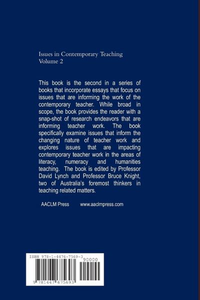This book is the second in a series of books that incorporate essays that focus on issues that are informing the work of the contemporary teacher. While broad in scope, the book provides the reader with a snap-shot of research endeavors that are informing teacher work. The book specifically examine issues that inform the changing nature of teacher work and explores issues that are impacting contemporary teacher work in the areas of literacy, numeracy and humanities teaching. The book is edited by Professor David Lynch and Professor Bruce Knight, two of Australia's foremost thinkers in teaching related matters.