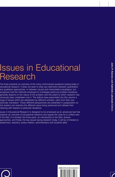 Presents an overview of the controversial questions arising in educational research, that depend on the nature of the problem and the extent to which research has been undertaken in an area. This volume is divided into three sections: an introduction to the field; diverse approaches; and the key issues facing educational research worldwide.