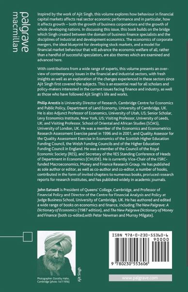 A Letter to Ajit from the Prime Minister of India; M.Singh Foreword; M.Scherer Introduction: Ajit Singh; P.Arestis & J.Eatwell Principles versus Rules; J.Eatwell Finance and Growth in Developing Countries: Sound Principles and Unreliable Evidence; V.Fitzgerald Micro-finance, Macro-finance, and Egalitarian Development; R.Pollin Financial Liberalization: The Current State of Play; P.Arestis & M.Sawyer Global Financial Regulation Versus the Engines of Financial Instability; R.Wade The Developmental Potential and Political Economy of Private Remittances: What do we Know? What do we Need to Know?; I.Grabel Ownership, Institutions and Technological Intensities: Automotive and Electronics Component Firms in East Asia; R.Rasiah Competition and Industrial Rates of Return; A.Shaikh Accounting for Business Combinations; G.Meeks & G.Whittington Takeovers after 'Takeovers'; A.Cosh & A.Hughes Ajit Singh Publications
